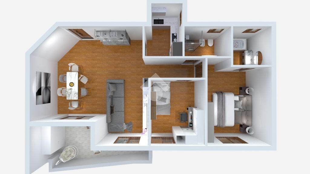 Questo ambiente è suddiviso in zona pranzo e zona Tv, e data l'ampiezza volendo si può ricreare una terza camera da letto come da progetto originale.