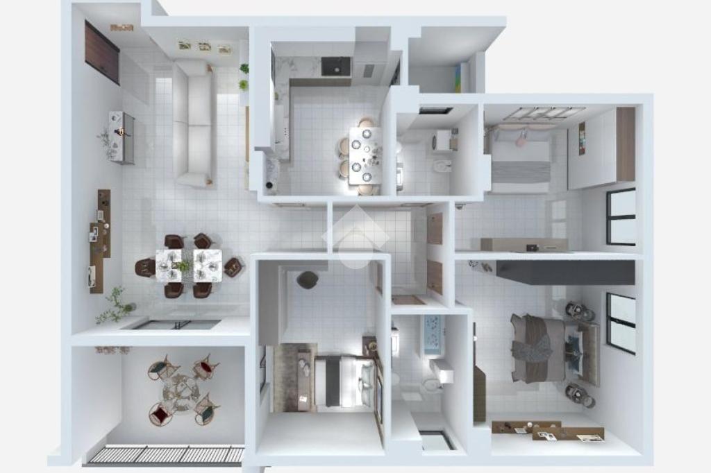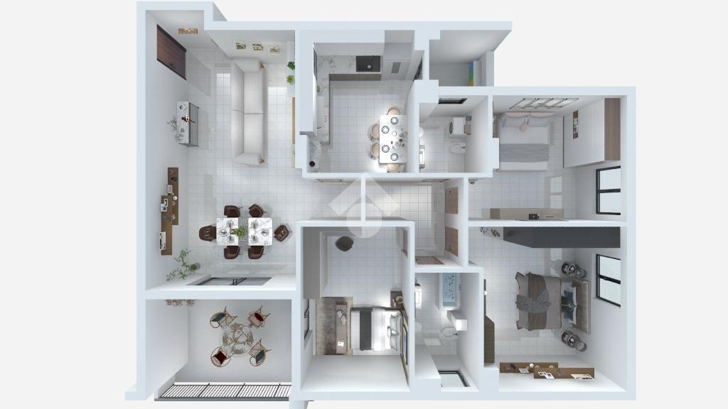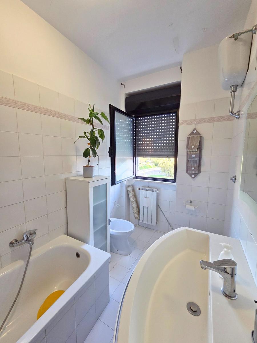 Il corridoio conduce alla zona notte composta dalle tre camere da letto, di cui due sono matrimoniali con finestra mentre quella più piccola ha uscita sul balcone, in più i due bagni entrambi con finestrati dispongono uno di doccia e l'altro di vasca.