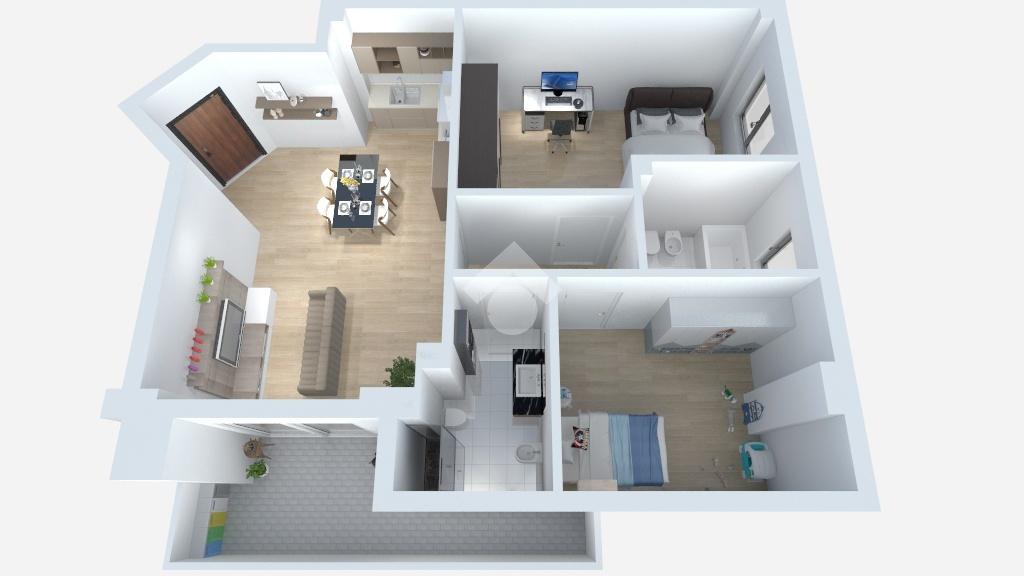 Dal soggiorno è possibile uscire sul balcone di 7 mq. e adibito a lavanderia per la presenza di un punto acqua e scarico per la lavatrice.