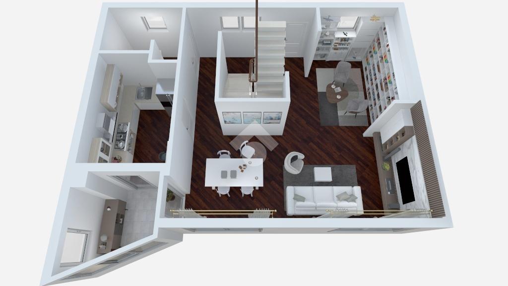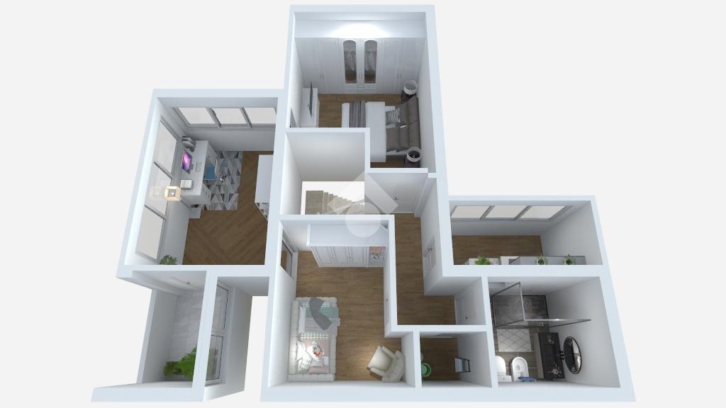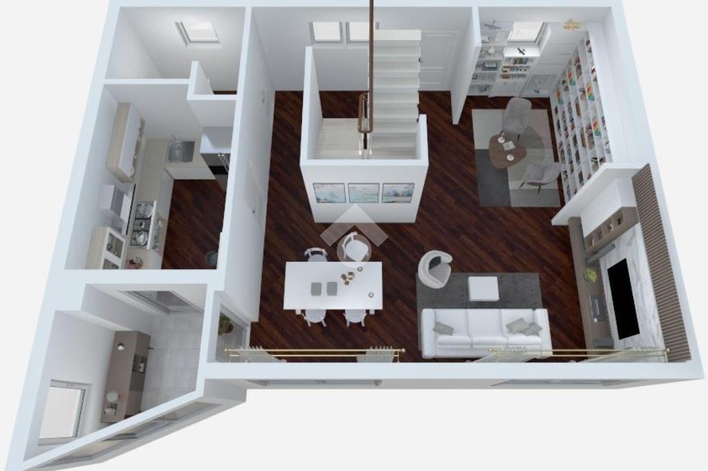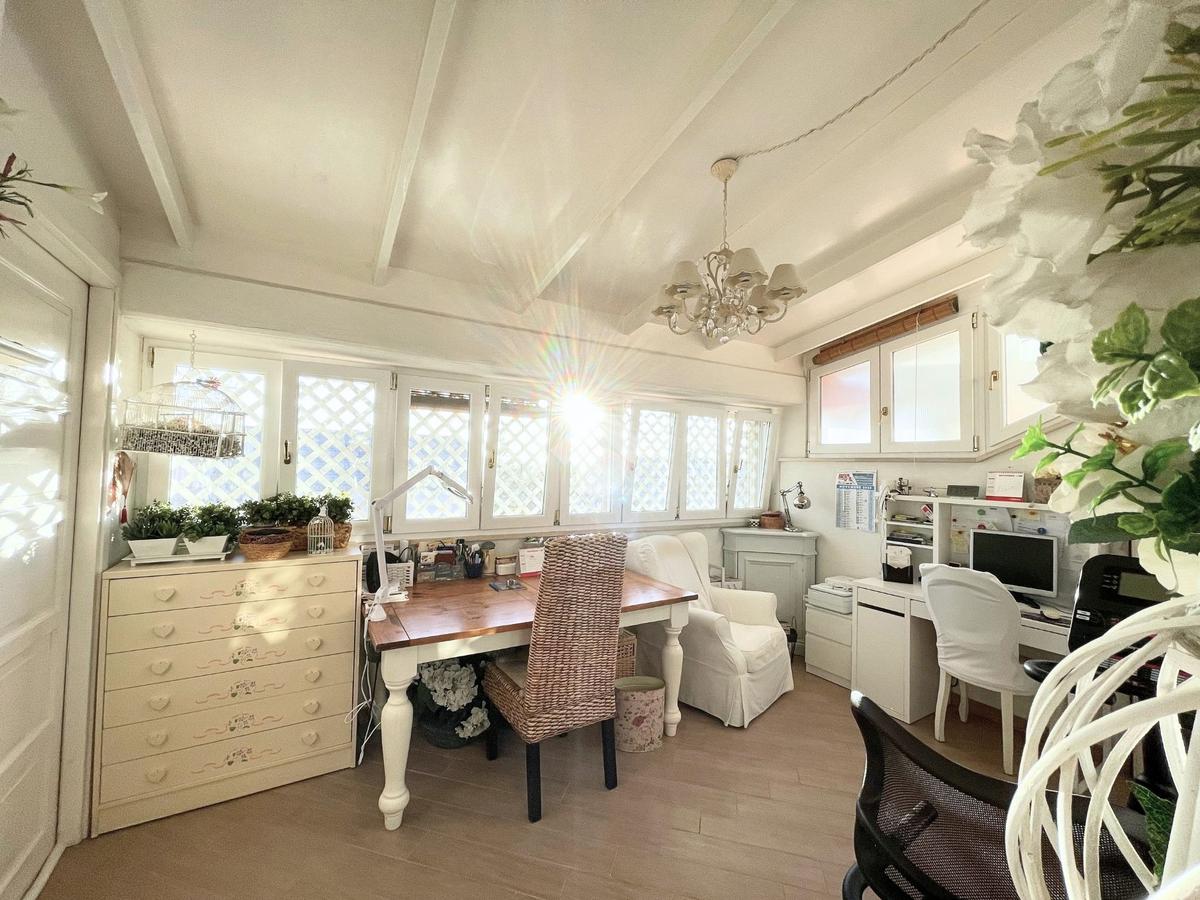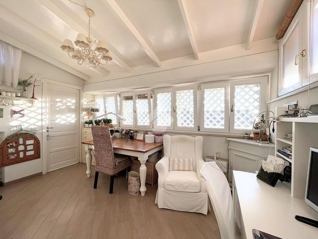 Completano il piano il balcone coperto adibito a zona lavanderia ed il terrazzo adibito a studio realizzato con vetrate.
