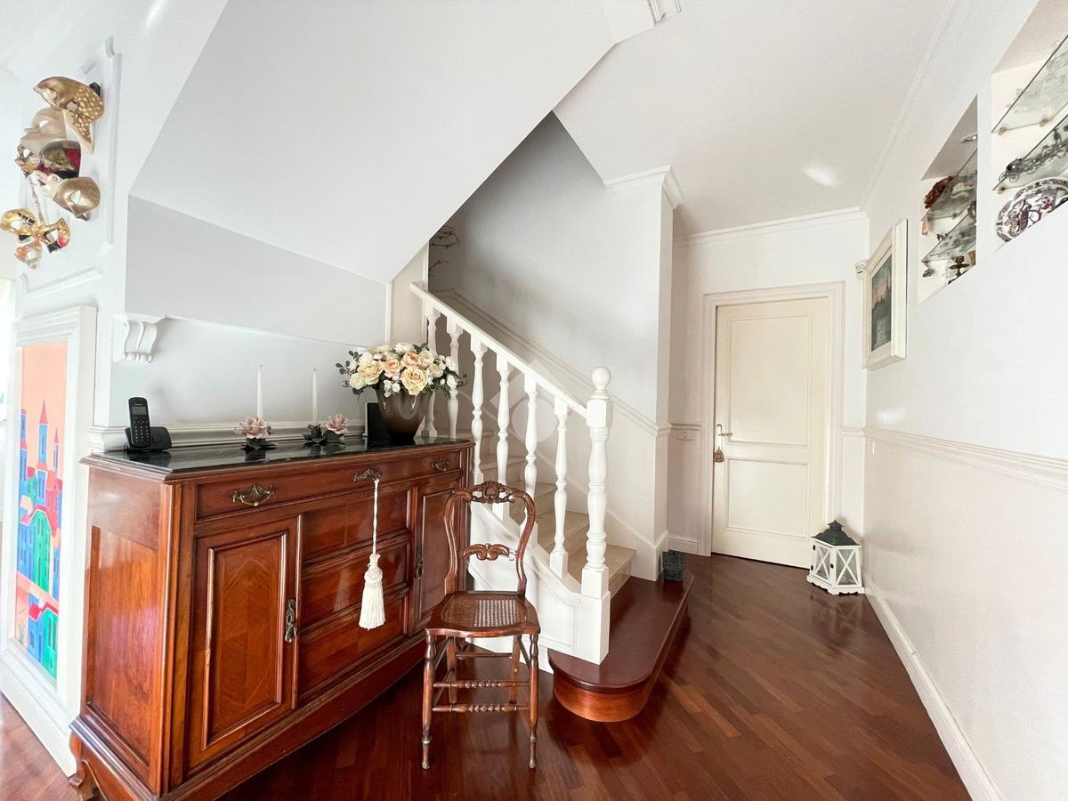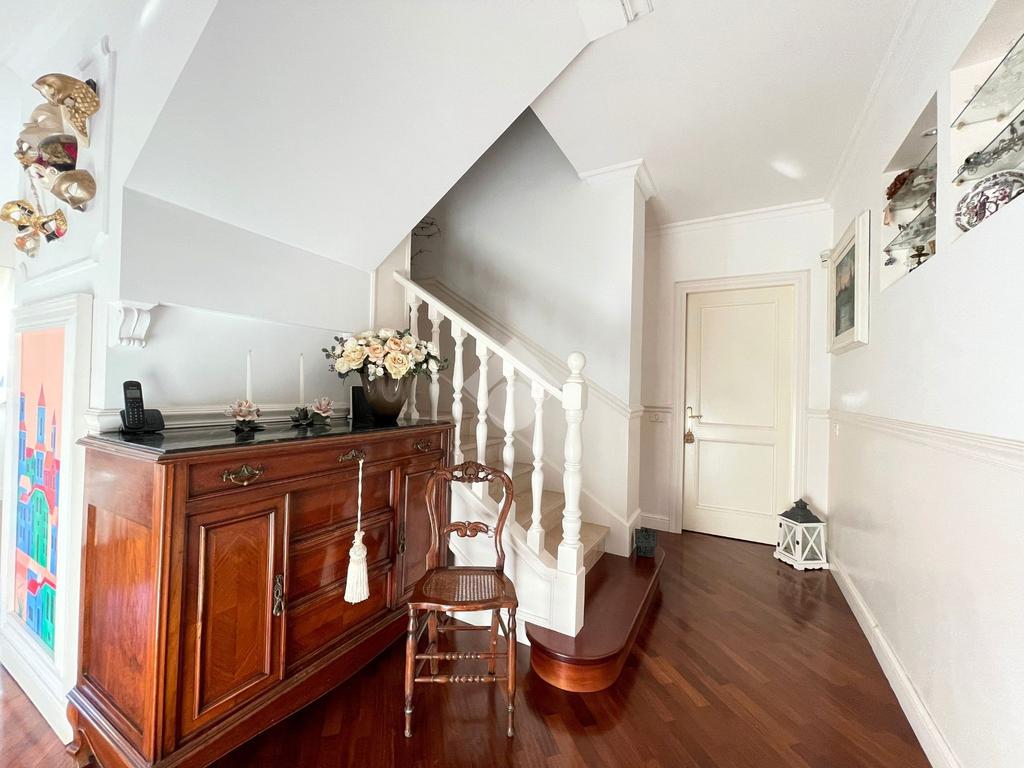 Varcando la porta d'ingresso si accede nel disimpegno, dove si trovano le scale che conducono al piano superiore.