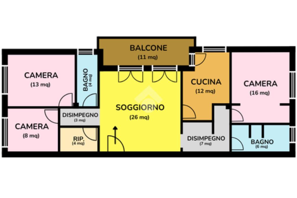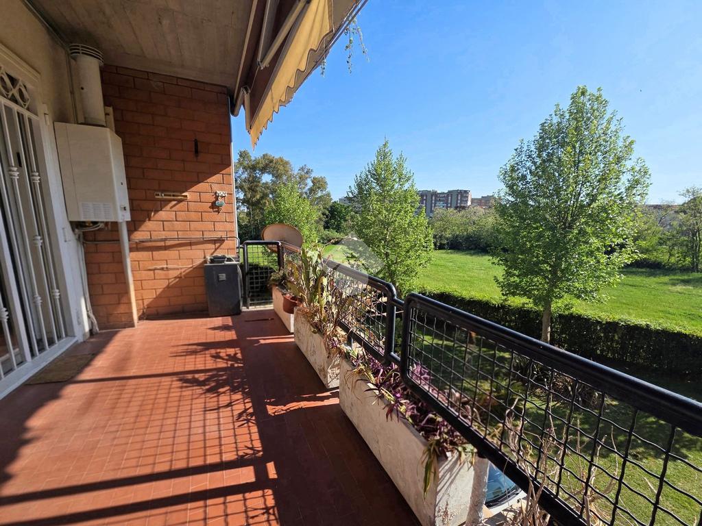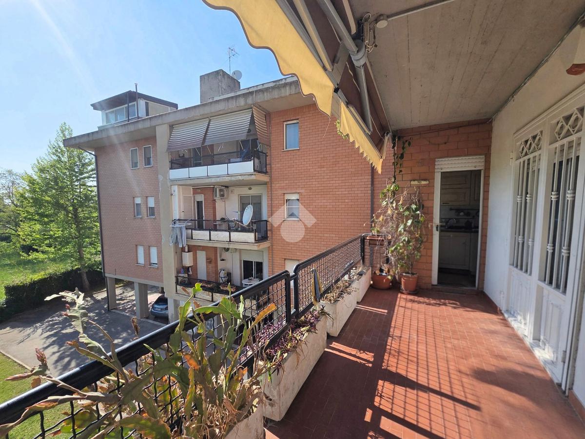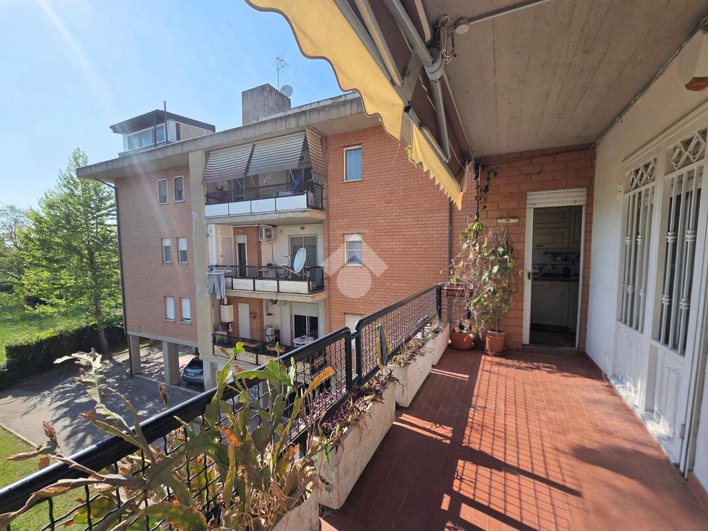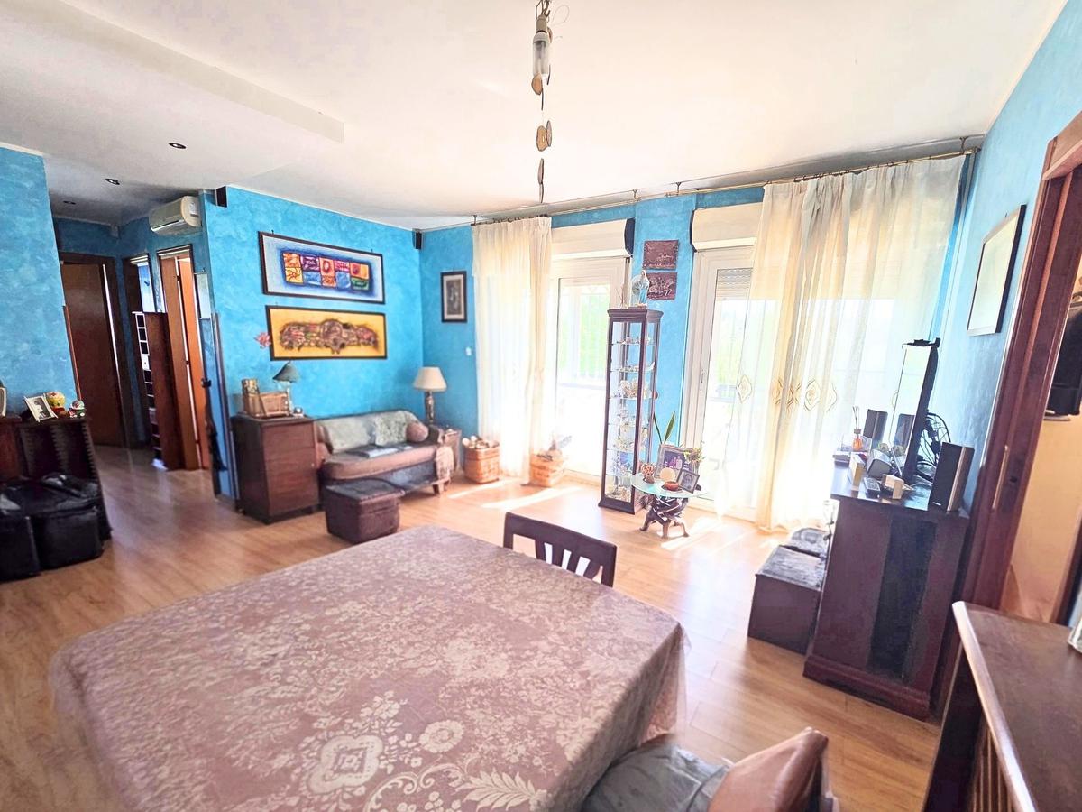 Varcando la soglia d'ingresso siamo direttamente nel soggiorno reso ampio e luminoso grazie all'esposizione Ovest e alla doppia porta finestra che permette l'uscita sul balcone vivibile di 11 mq.