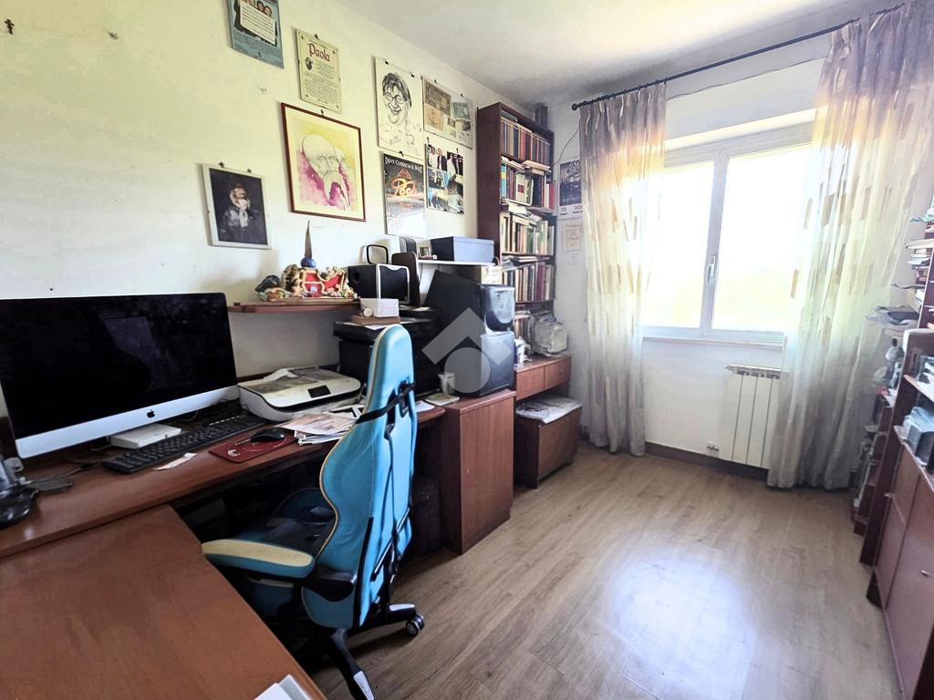 Il secondo disimpegno conduce all'ala sinistra dell'appartamento dove trovano posto ulteriori due camere esposte a Sud di cui una adibita a studio. A completamento della zona un secondo bagno finestrato di servizio e un comodo ripostiglio.