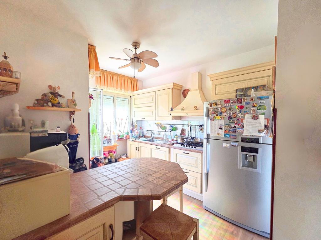 Alla cucina, che è abitabile, si accede dal soggiorno e anch'essa ha uscita sul balcone.